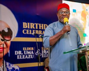 While congratulating the couple on their birthday celebrations, Governor Otti disclosed that, Dr. Uma Eleazu clocked 95 on the 16th day of June 2025 and was celebrated at Lagos, his wife , Mrs Njansi Eleazu clocks 85 this October, adding that he sought their approval to host and celebrate them.