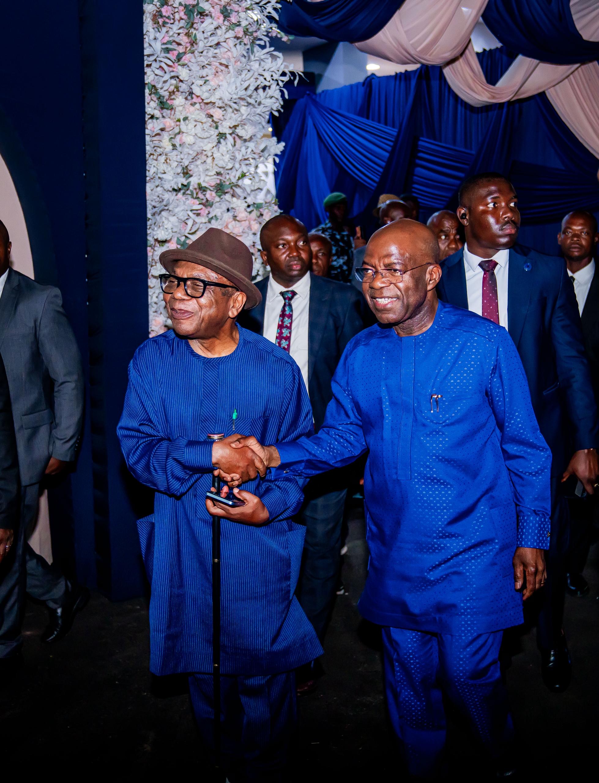 Responding on behalf of his wife, Elder Dr Uma Eleazu commended Governor Otti for his achievements including remodeling the Michael Okpara Auditorium and thanked him for celebrating him and his wife in a grand style.