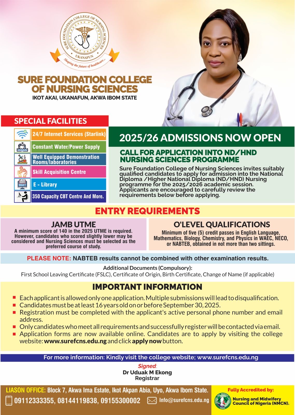 Sure Foundation College of Nursing Sciences, Ikot Akai, Ukanafun, Akwa Ibom State, has officially announced the opening of its 2025 admission cycle with a groundbreaking transition to a fully digital application portal designed to meet global best practices.