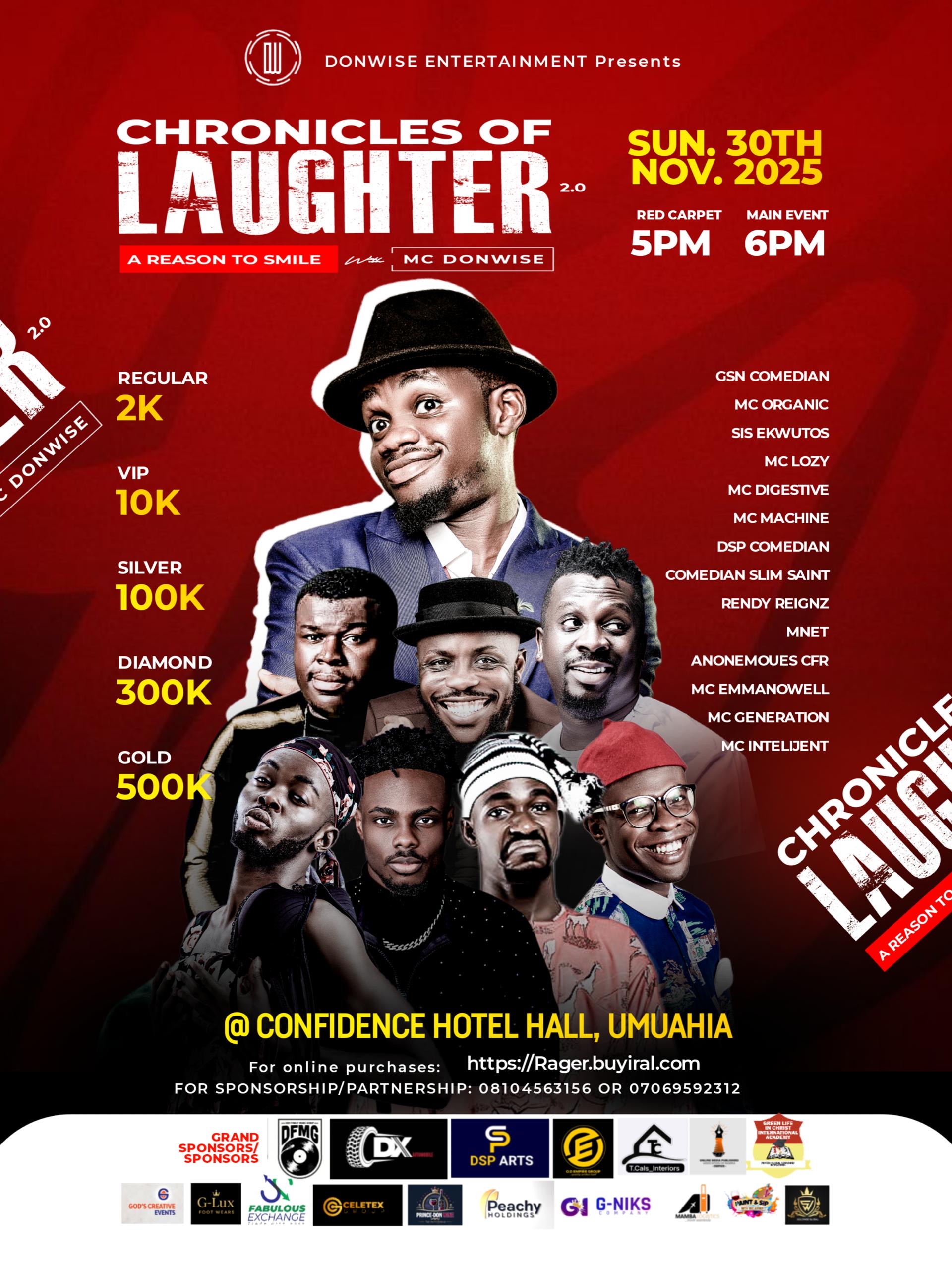 A popular laughter entertainment guru by name MC Don Wise will be live in Umuahia for an entertainment program tagged “Chronicles Of Laughter”