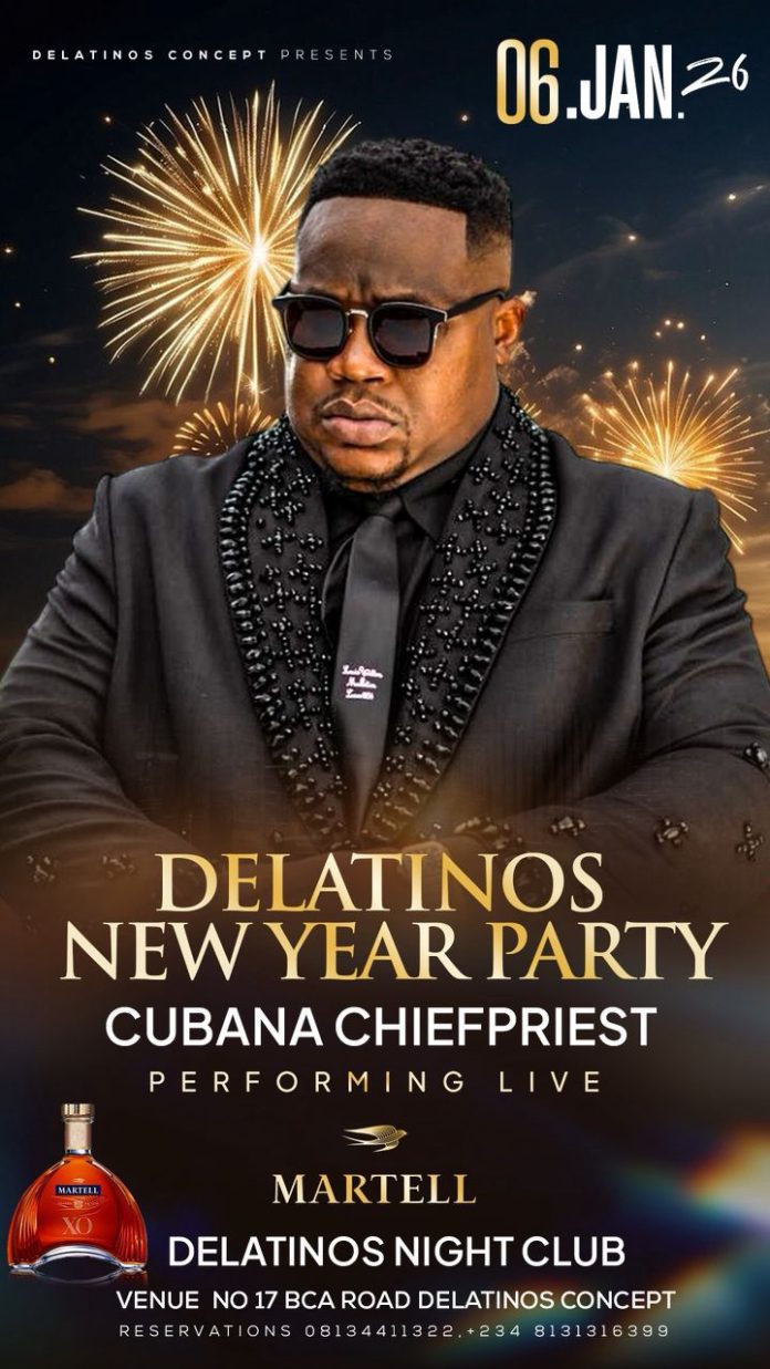 De Latinos Concepts is proud to announce the Cubana Chief Priest Premium Live Concert, set to take place on Tuesday, January 6, 2025, at the iconic De Latinos Arena, Umuahia, Abia State with festivities kicking off at 7:00 PM.