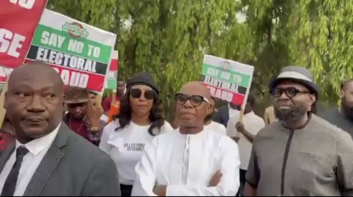 Former Rivers State Governor, Rotimi Amaechi, has joined the protest demanding the real time transmission of election results.