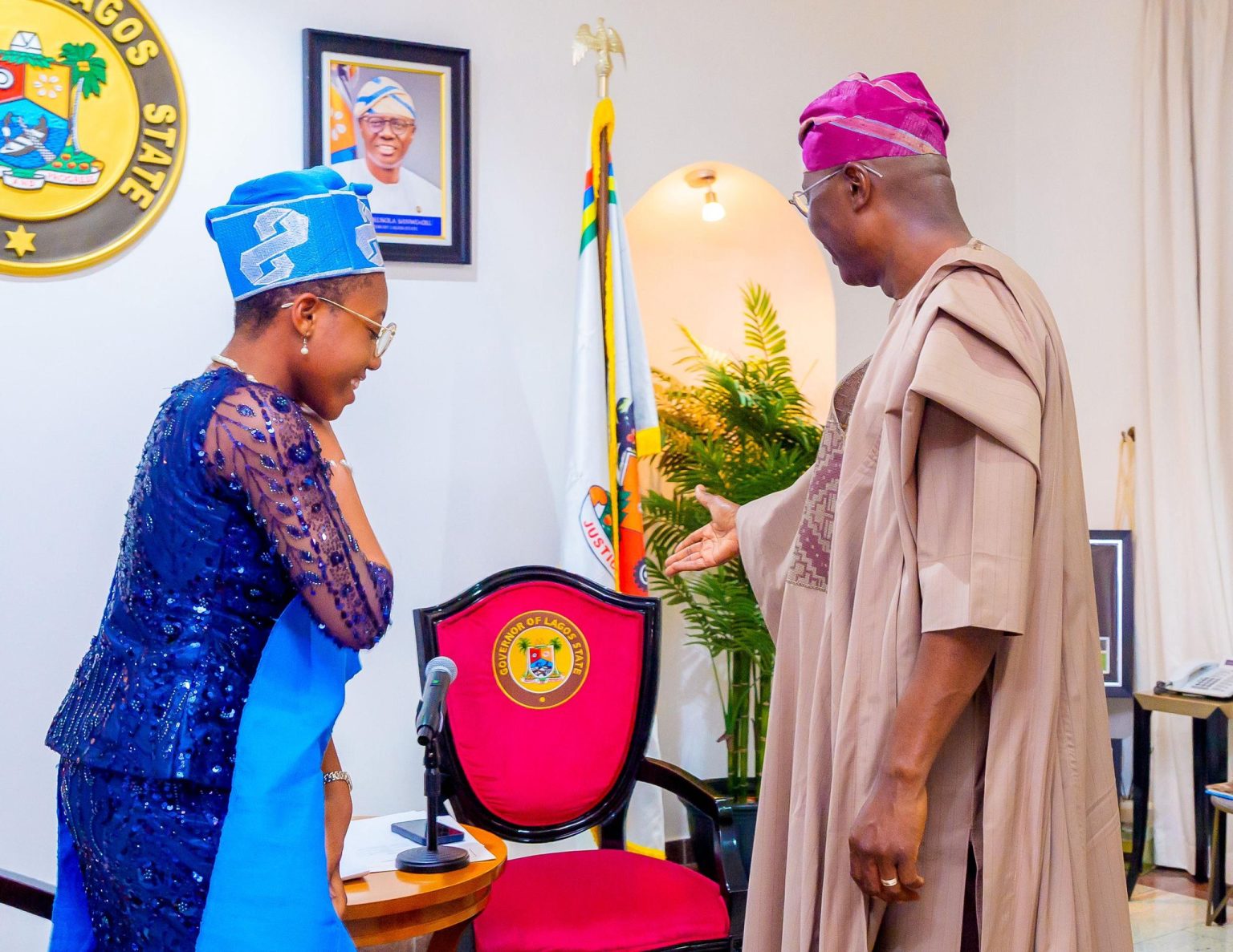 The ceremonial transition took place at the State House, Marina, where the One Day Governor was formally received by Sanwo Olu alongside members of her symbolic cabinet.